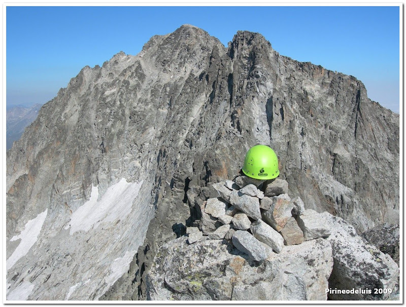 Foto desde la cima hacia el Turon y mi casco en la punta norte.