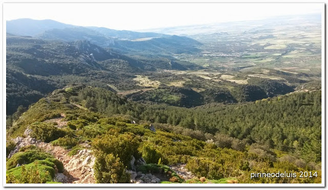 hasta salir a una pista que se recorre durante unos metros hasta un desvío de nuevo por la PR-HU-105, aquí no hay fotos ya que se me puso el móvil a hacer actualizaciones y no era cuestión de esperar... así que voy subiendo por el sendero ya fuera de bosque hasta alcanzar el lomo de la cresta Este que lleva al "collado" previo al Puchilibro. En la cresta toca subir caminando...