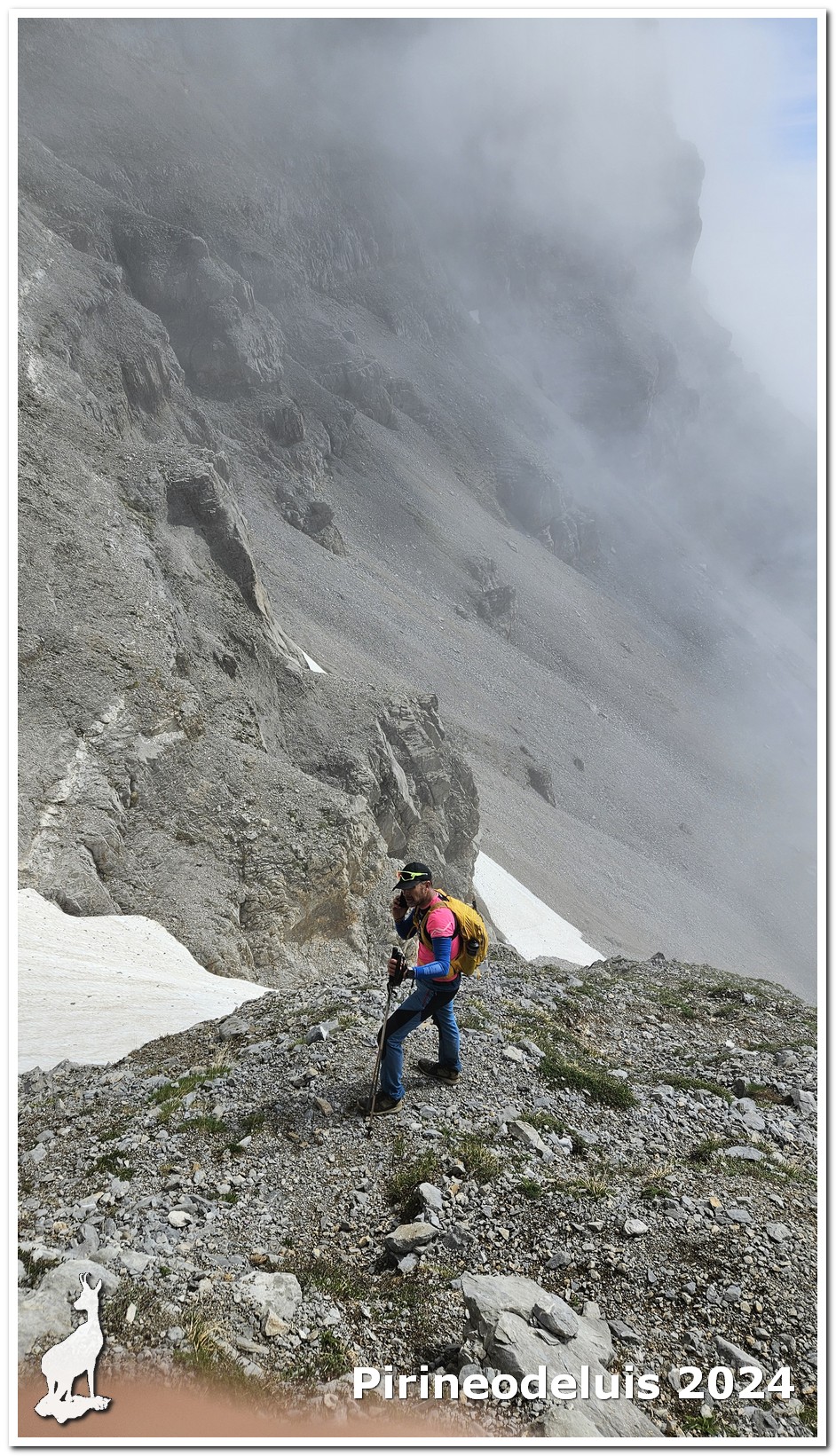 la roca es una caliza de excelente adherencia y vamos superadon escalones de roca y tramos de rimaya hasta el col de Lhurs